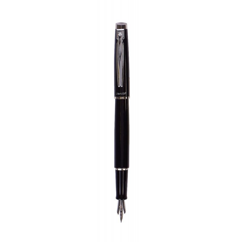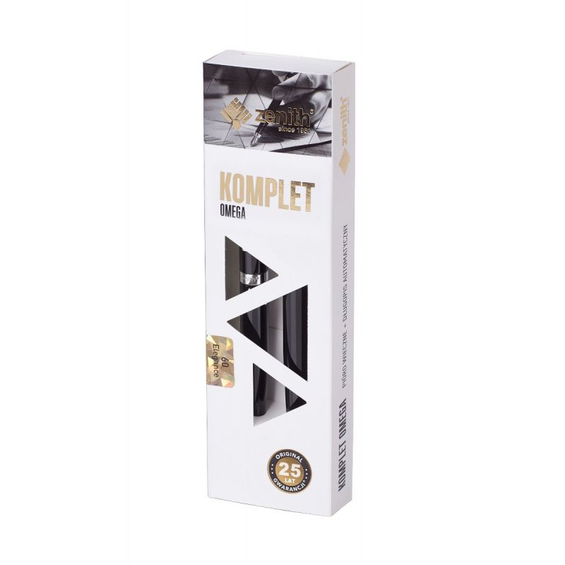 Set stilou din metal cu capac, penita iridium + pix din metal cu mecanism, mina tip parker, in cutie carton, negru, Zenith 60 Elegance