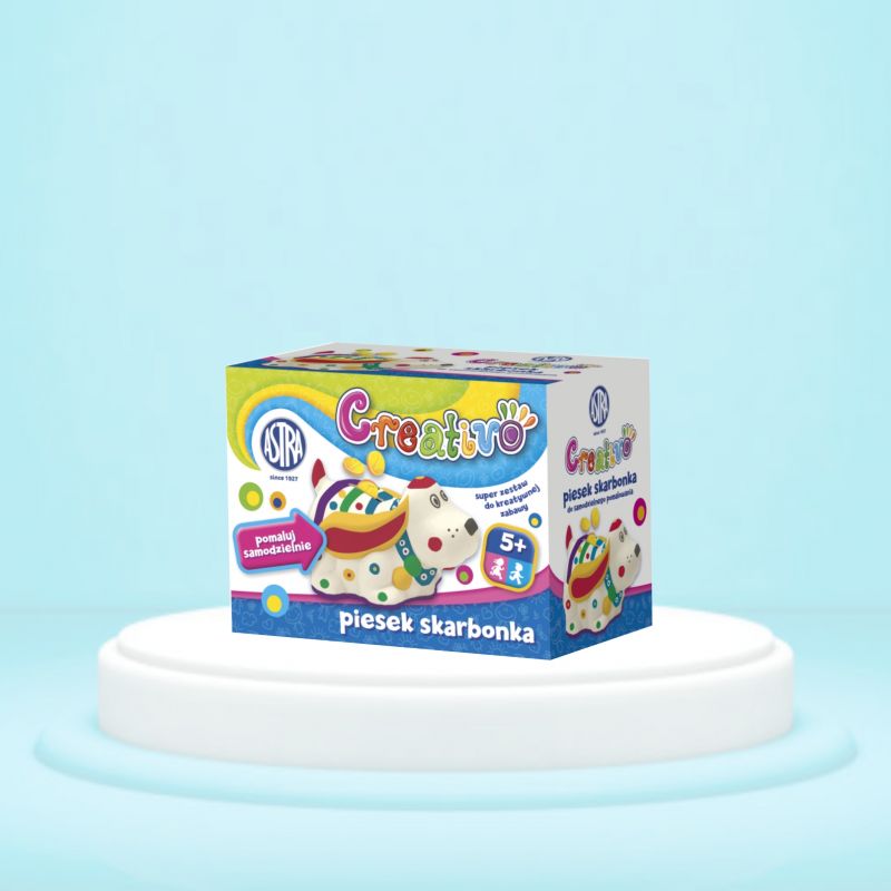 Kit de creatie, pusculita din gips+6 culori acrilice+1 pensula, ASTRA