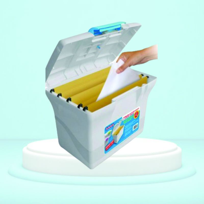 Container pentru depozitare si transport dosare; material dur, contine 5 dosare suspendate, dim. 370x253x297 mm, culoare verde, Italia