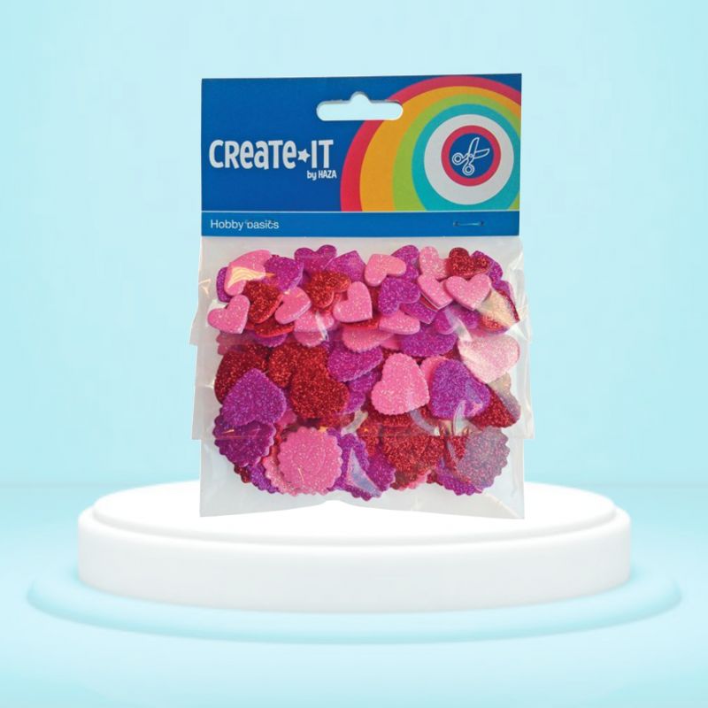Inimioare glitter din spuma, autoadezive, 132buc/set, HAZA