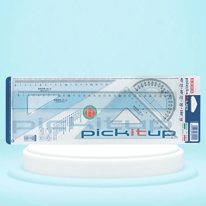 Set geometrie 4 buc: linie 30cm, raportor 10cm, echer 45 si 60 grade 21 cm, colectia PICKITUP, ARDA, AR60420BIS