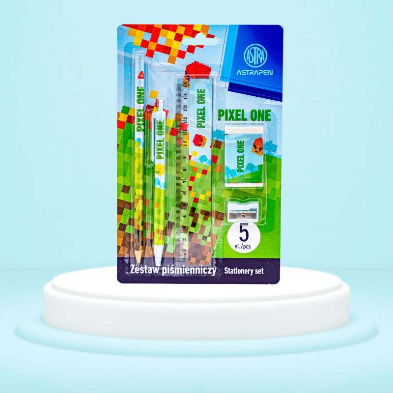 Set scolar, 5 piese, PIXEL ONE, creion, pix, rigla, radiera, ascutitoare, ASTRA