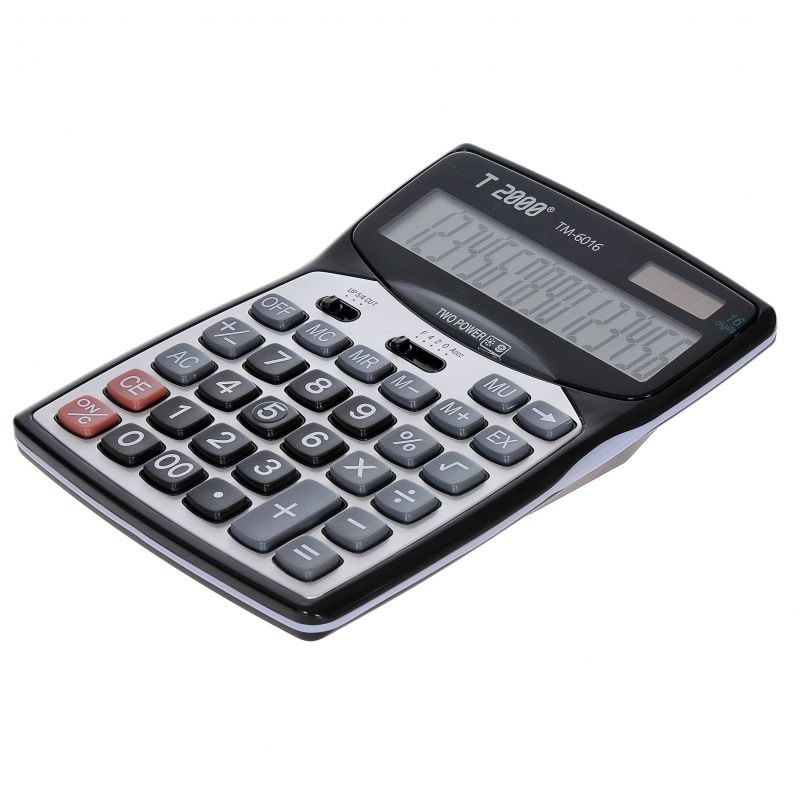 Calculator 16 dig.cu operatii complete, design modern, display mare, carcasa argintiu cu negru, T2000