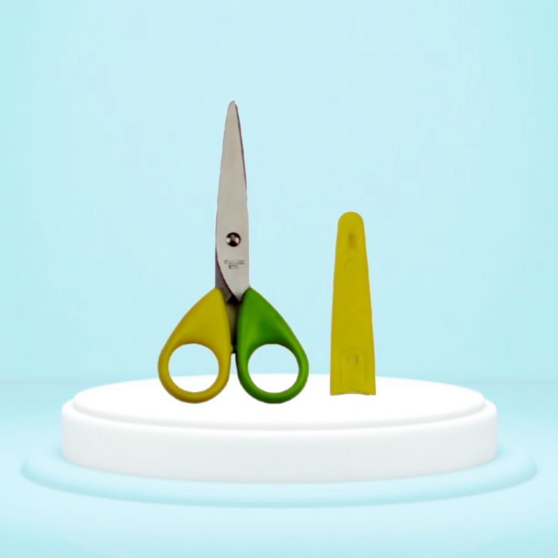 Foarfeca 12 cm cu teaca de protectie si maner bicolor.