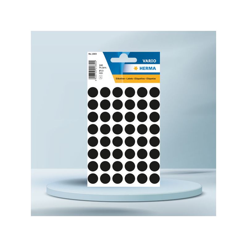 Sticker Vario, buline, negru, Ø 12, HERMA