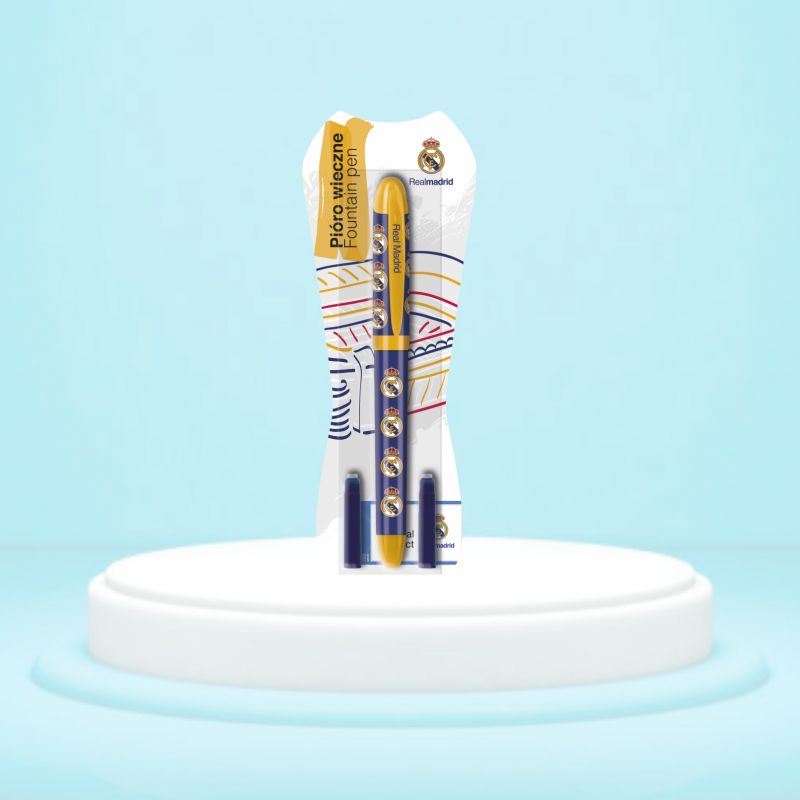 Stilou cu doua rezerve, Real Madrid, penita iridiu, scriere usoara, blister.