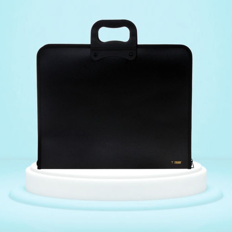 Geanta A3 cu fermoar, din PP, buzunar la interior, marimea 46.2x37.5x3 cm, grosime 0.65mm, culoare: negru
