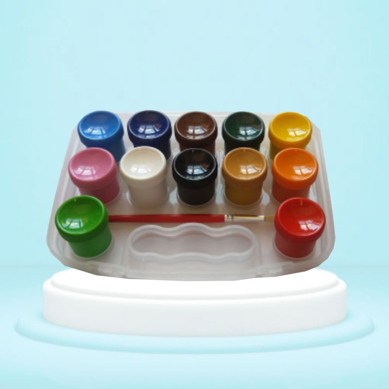Tempera, 12 culori x 20ml+pensula, nu necesita diluare cu apa, pentru carton si lemn