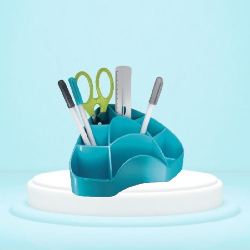 Suport de birou compartimentat, finisaj lucios, dim.185x123x90 mm, culoare turcoaz, Italia.