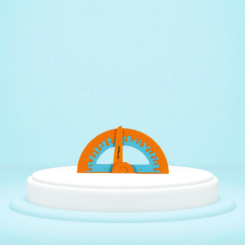 Raportor 180 grade din gama Soft Touch, cu design modern, cu brat retractabil pentru o precizie ridicata, confectionat din ABS si cauciuc moale.