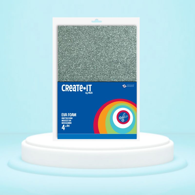 Spuma din cauciuc, A4, glitter diverse culori, 4 buc/set