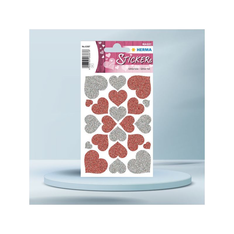 Sticker Magic, inimioare rosii si argintii, HERMA